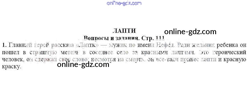 Готовые домашние задания по Литературе за 6 класс Учебник Меркин Инновационная школа 2016 - Вопросы и задания Лапти 1