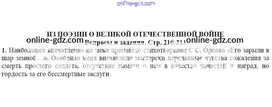 Готовые домашние задания по Литературе за 6 класс Учебник Меркин Инновационная школа 2016 - Вопросы и задания Из поэзии о Великой Отечественной Войне 1