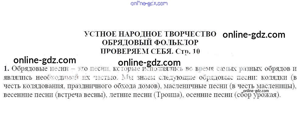 Готовые домашние задания по Литературе за 6 класс Учебник Полухина, Коровина 2016 - Часть 1 (Страницы) 10