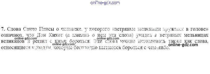Готовые домашние задания по Литературе за 7 класс Учебник Чертов, Трубина 2018 - Вопросы и задания М. Де Сервантес Сааведра. Хитроумный идальго дон Кихот Ламанчский 7