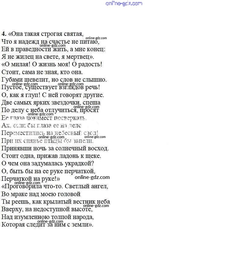 Готовые домашние задания по Литературе за 7 класс Учебник Чертов, Трубина 2018 - Вопросы и задания У. Шекспир. Ромео и Джульетта 4