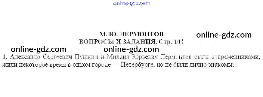 Готовые домашние задания по Литературе за 7 класс Учебник Чертов, Трубина 2018 - Вопросы и задания М. Ю. Лермонтов 1
