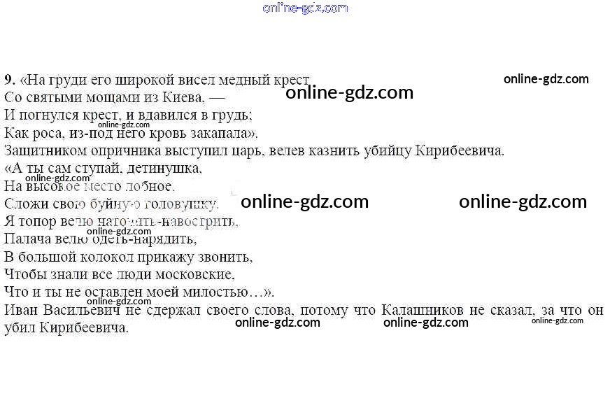 Готовые домашние задания по Литературе за 7 класс Учебник Чертов, Трубина 2018 - Вопросы и задания Песня про царя Ивана Васильевича 9
