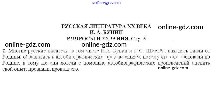 Готовые домашние задания по Литературе за 7 класс Учебник Чертов, Трубина 2018 - Вопросы и задания И. А. Бунин 2