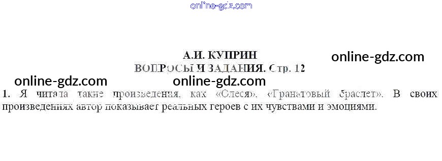 Готовые домашние задания по Литературе за 7 класс Учебник Чертов, Трубина 2018 - Вопросы и задания А.И. Куприн 1