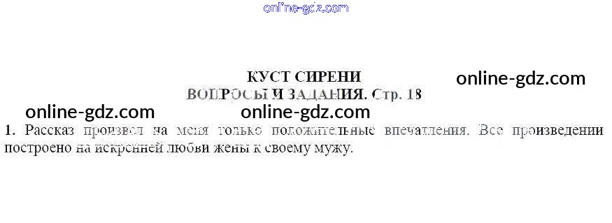 Готовые домашние задания по Литературе за 7 класс Учебник Чертов, Трубина 2018 - Вопросы и задания Куст сирени 1