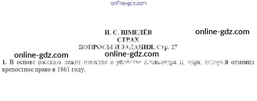 Готовые домашние задания по Литературе за 7 класс Учебник Чертов, Трубина 2018 - Вопросы и задания И. С. Шмелёв. Страх 1