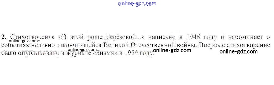 Готовые домашние задания по Литературе за 7 класс Учебник Чертов, Трубина 2018 - Вопросы и задания В этой роще берёзовой 2