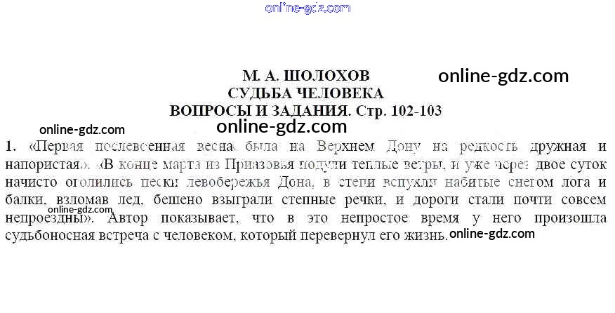 Готовые домашние задания по Литературе за 7 класс Учебник Чертов, Трубина 2018 - Вопросы и задания М. А. Шолохов. Судьба человека 1