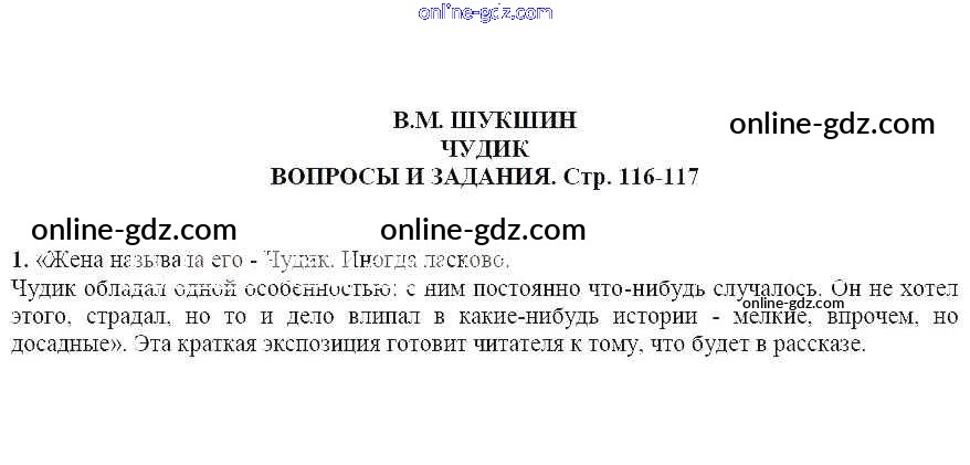 Готовые домашние задания по Литературе за 7 класс Учебник Чертов, Трубина 2018 - Вопросы и задания В.М. Шукшин. Чудик 1
