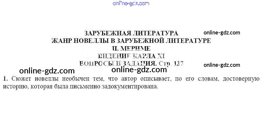 Готовые домашние задания по Литературе за 7 класс Учебник Чертов, Трубина 2018 - Вопросы и задания П. Мериме. Видение карла XI 1