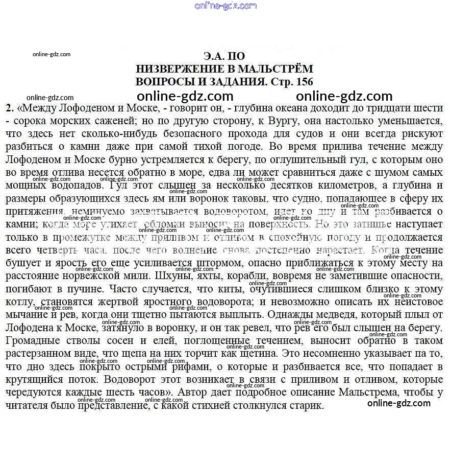 Готовые домашние задания по Литературе за 7 класс Учебник Чертов, Трубина 2018 - Вопросы и задания Э.А. По. Низвержение в Мальстрём 2