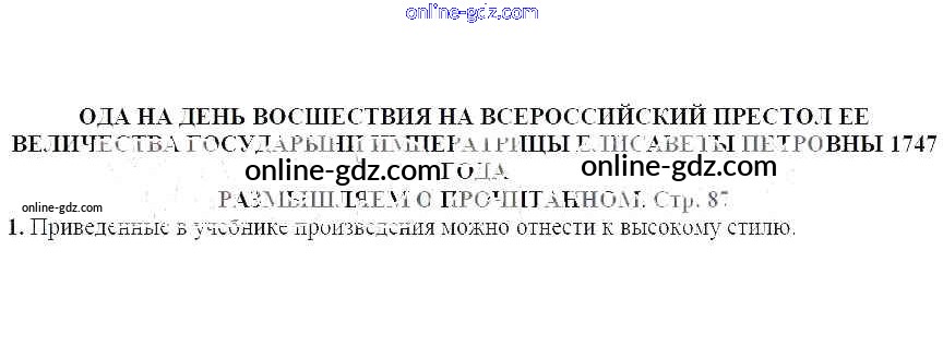 Готовые домашние задания по Литературе за 7 класс Учебник Коровина, Журавлев 2016 - Размышляем о прочитанном Ода на день восшествия на всероссийский престол ее Величества Государыни 1