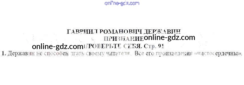 Готовые домашние задания по Литературе за 7 класс Учебник Коровина, Журавлев 2016 - Проверьте себя Гавриил Романович Державин. Признание 1