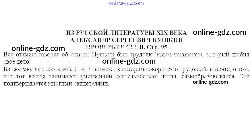 Готовые домашние задания по Литературе за 7 класс Учебник Коровина, Журавлев 2016 - Из русской литературы XIX века. Александр Сергеевич Пушкин Часть 1 Проверьте себя