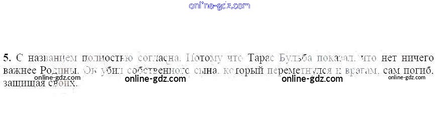 Готовые домашние задания по Литературе за 7 класс Учебник Коровина, Журавлев 2016 - Размышляем о прочитанном Тарас Бульба 5
