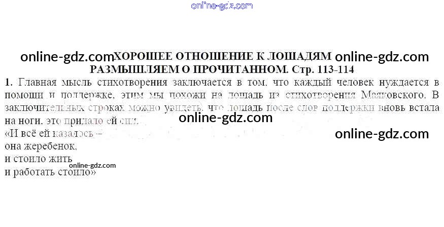 Готовые домашние задания по Литературе за 7 класс Учебник Коровина, Журавлев 2016 - Размышляем о прочитанном Хорошее отношение к лошадям 1