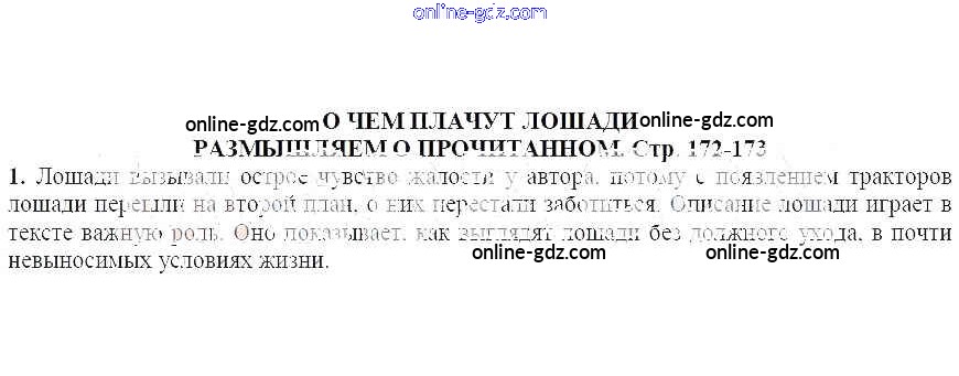 Готовые домашние задания по Литературе за 7 класс Учебник Коровина, Журавлев 2016 - Размышляем о прочитанном О чем плачут лошади 1