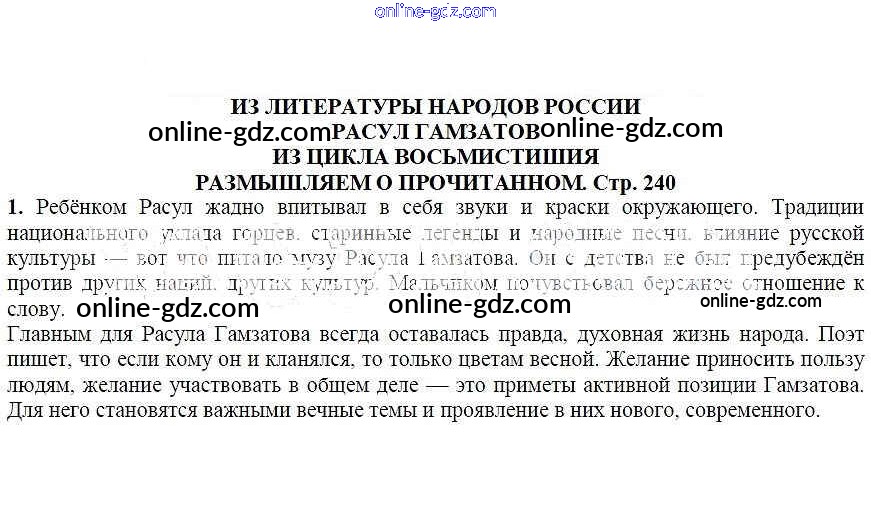Готовые домашние задания по Литературе за 7 класс Учебник Коровина, Журавлев 2016 - Размышляем о прочитанном Из литературы народов России. Расул Гамзатов. Из цикла восьмистишия 1