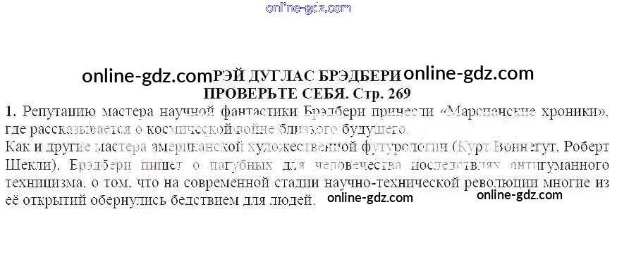 Готовые домашние задания по Литературе за 7 класс Учебник Коровина, Журавлев 2016 - Проверьте себя Рэй Дуглас Брэдбери 1