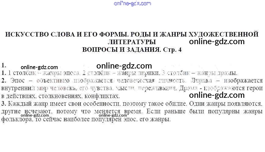 Готовые домашние задания по Литературе за 7 класс Учебник-хрестоматия Курдюмова Вертикаль 2018 - Вопросы и задания Искусство слова и его формы. Роды и жанры художественной литературы 1