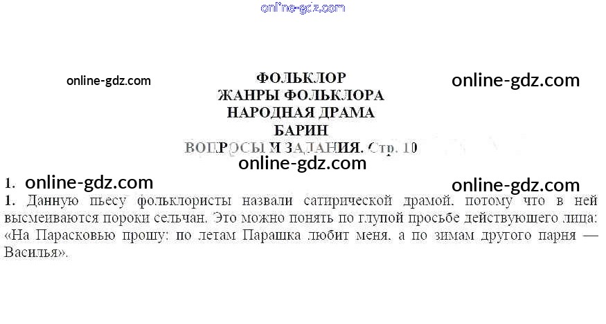 Готовые домашние задания по Литературе за 7 класс Учебник-хрестоматия Курдюмова Вертикаль 2018 - Вопросы и задания Фольклор. Жанры фольклора. Народная драма. Барин 1