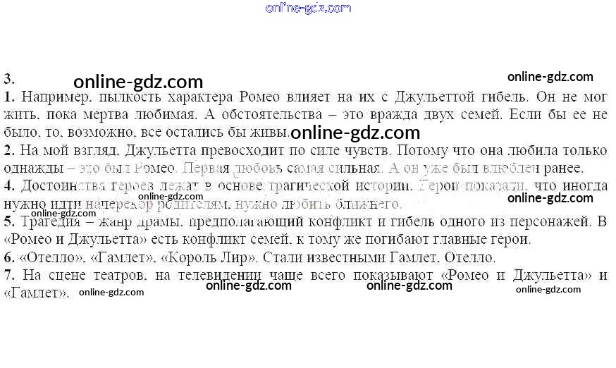 Готовые домашние задания по Литературе за 7 класс Учебник-хрестоматия Курдюмова Вертикаль 2018 - Вопросы и задания Мир и человек в эпоху возрождения. У. Шекспир. Ромео И Джульетта 3
