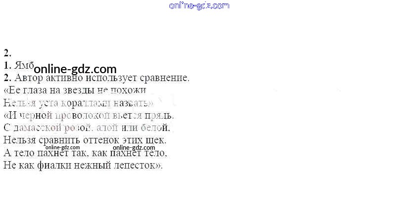 Готовые домашние задания по Литературе за 7 класс Учебник-хрестоматия Курдюмова Вертикаль 2018 - Вопросы и задания Сонеты Шекспира. Сонет 130 2