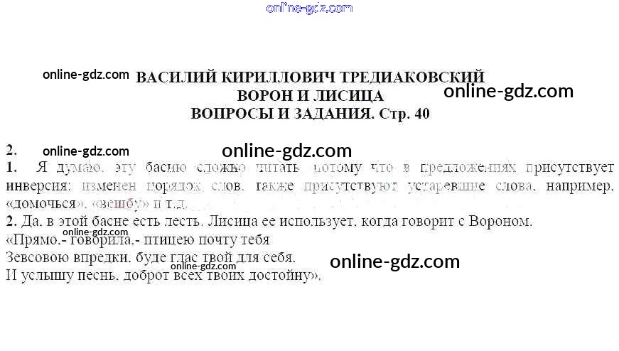 Готовые домашние задания по Литературе за 7 класс Учебник-хрестоматия Курдюмова Вертикаль 2018 - Вопросы и задания Василий Кириллович Тредиаковский. Ворон и лисица 2