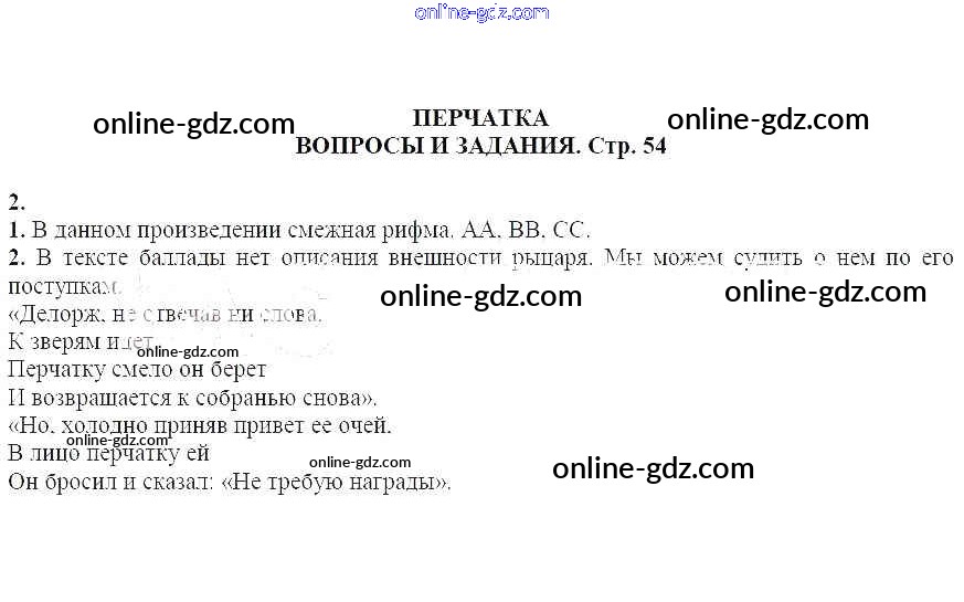 Готовые домашние задания по Литературе за 7 класс Учебник-хрестоматия Курдюмова Вертикаль 2018 - Вопросы и задания Перчатка 2
