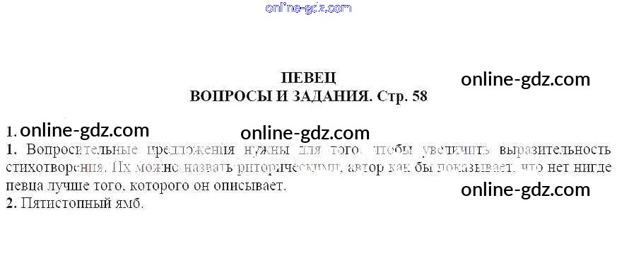 Готовые домашние задания по Литературе за 7 класс Учебник-хрестоматия Курдюмова Вертикаль 2018 - Вопросы и задания Певец 1