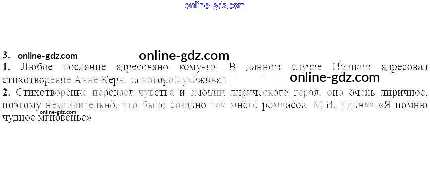 Готовые домашние задания по Литературе за 7 класс Учебник-хрестоматия Курдюмова Вертикаль 2018 - Вопросы и задания К (Я помню чудное мгновенье...) 3