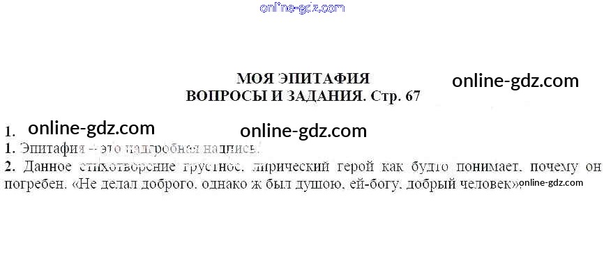 Готовые домашние задания по Литературе за 7 класс Учебник-хрестоматия Курдюмова Вертикаль 2018 - Вопросы и задания Моя эпитафия 1