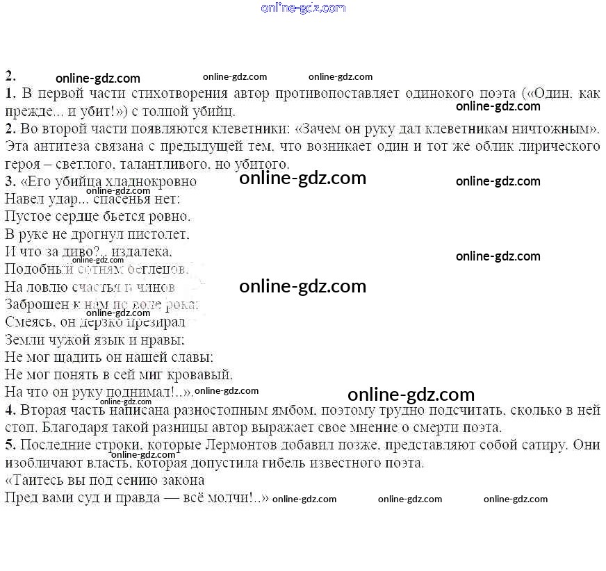 Готовые домашние задания по Литературе за 7 класс Учебник-хрестоматия Курдюмова Вертикаль 2018 - Вопросы и задания Михаил Юрьевич Лермонтов. Смерть поэта 2