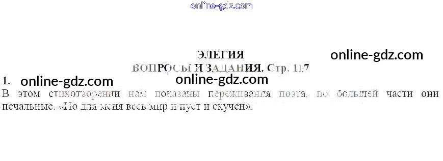 Готовые домашние задания по Литературе за 7 класс Учебник-хрестоматия Курдюмова Вертикаль 2018 - Вопросы и задания Элегия 1