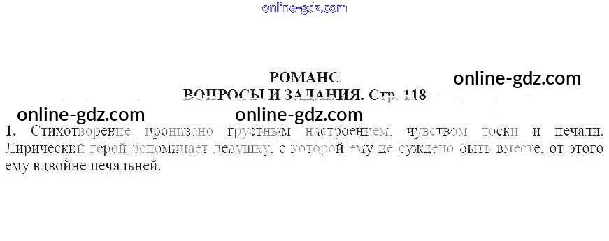 Готовые домашние задания по Литературе за 7 класс Учебник-хрестоматия Курдюмова Вертикаль 2018 - Вопросы и задания Романс 1