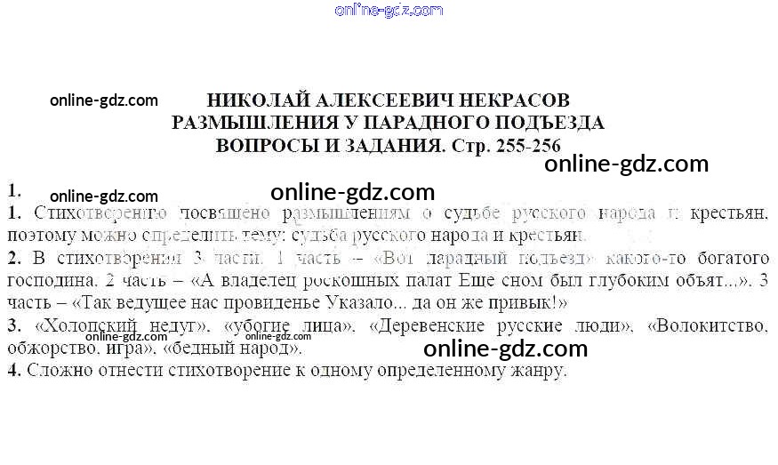 Готовые домашние задания по Литературе за 7 класс Учебник-хрестоматия Курдюмова Вертикаль 2018 - Вопросы и задания Николай Алексеевич Некрасов. Размышления у парадного подъезда 1