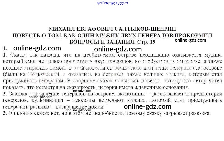 Готовые домашние задания по Литературе за 7 класс Учебник-хрестоматия Курдюмова Вертикаль 2018 - Вопросы и задания Михаил Евгафович Салтыков-Щедрин. Повесть о том, как один мужик двух генералов прокормил 1