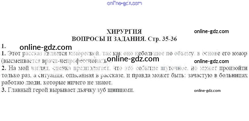 Готовые домашние задания по Литературе за 7 класс Учебник-хрестоматия Курдюмова Вертикаль 2018 - Вопросы и задания Хирургия 1