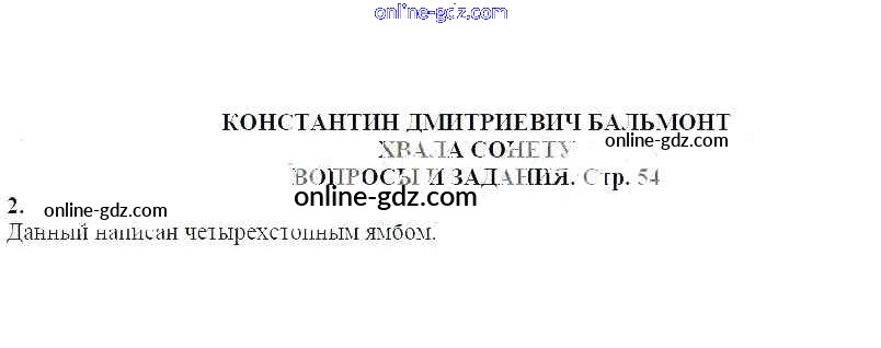 Готовые домашние задания по Литературе за 7 класс Учебник-хрестоматия Курдюмова Вертикаль 2018 - Вопросы и задания Константин Дмитриевич Бальмонт. Хвала сонету 2