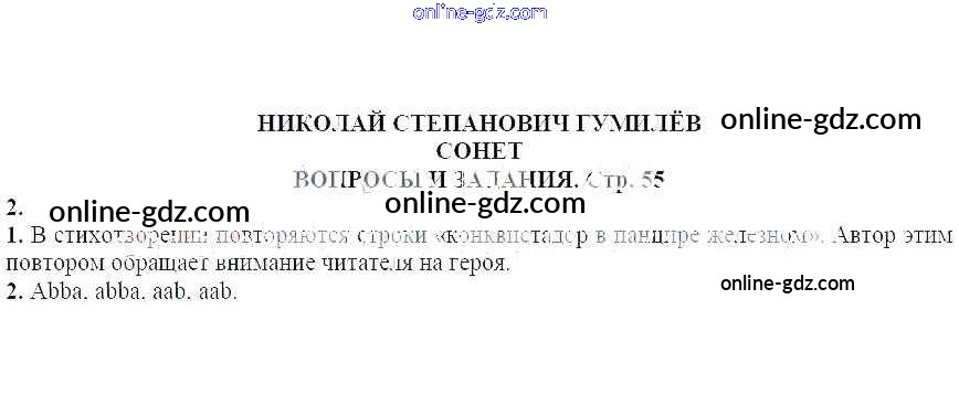 Готовые домашние задания по Литературе за 7 класс Учебник-хрестоматия Курдюмова Вертикаль 2018 - Вопросы и задания Николай Степанович Гумилёв. Сонет 2