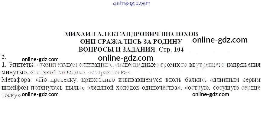 Готовые домашние задания по Литературе за 7 класс Учебник-хрестоматия Курдюмова Вертикаль 2018 - Вопросы и задания Михаил Александрович Шолохов. Они сражались за Родину 2