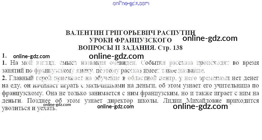 Готовые домашние задания по Литературе за 7 класс Учебник-хрестоматия Курдюмова Вертикаль 2018 - Вопросы и задания Валентин Григорьевич Распутин. Уроки французского 1