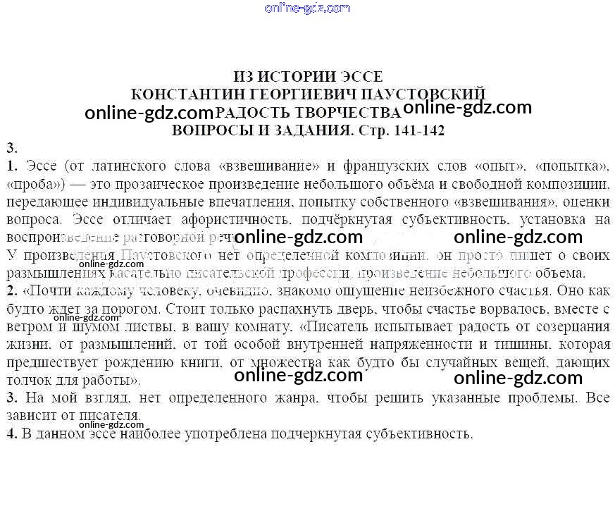 Готовые домашние задания по Литературе за 7 класс Учебник-хрестоматия Курдюмова Вертикаль 2018 - Вопросы и задания Константин Георгиевич Паустовский. Радость творчества 3