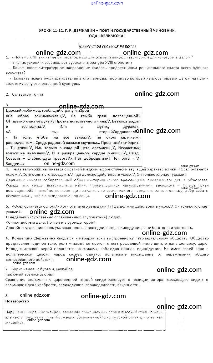 Готовые домашние задания по Литературе за 8 класс Рабочая тетрадь Соловьева Инновационная школа 2016 - Уроки 11