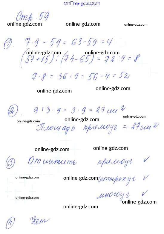 Готовые домашние задания по Математике за 2 класс Тетрадь для контрольных работ Рудницкая, Юдачева Начальная школа XXI века 2014 - Страницы 59