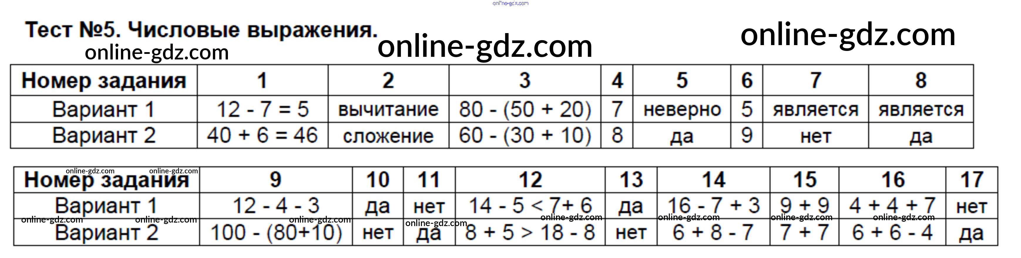 Готовые домашние задания по Математике за 2 класс Тесты Рудницкая УМК 2016 - Часть 1. Тесты 5