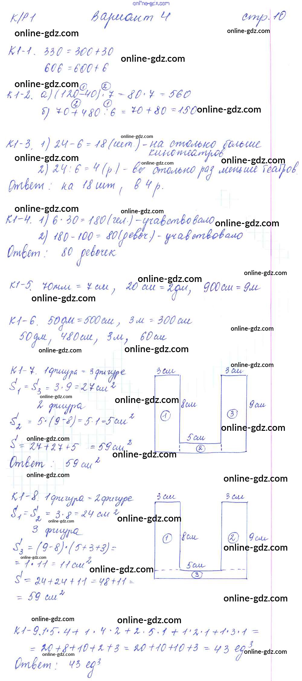 Готовые домашние задания по Математике за 3 класс Контрольные и диагностические работы Башмаков, Нефедова Планета знаний 2018 - Контрольная работа №1 вариант 4
