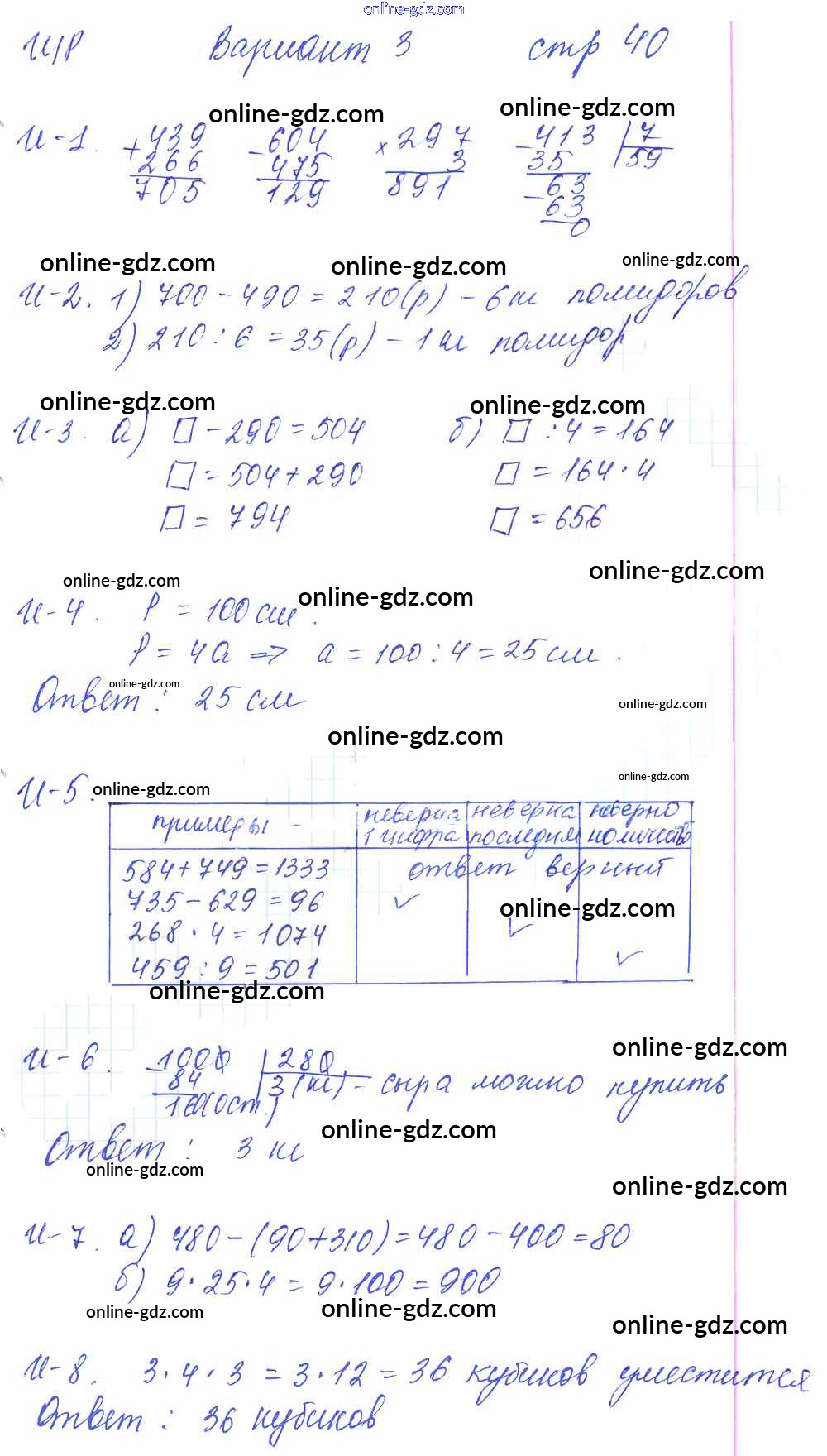 Готовые домашние задания по Математике за 3 класс Контрольные и диагностические работы Башмаков, Нефедова Планета знаний 2018 - Итоговая контрольная работа вариант 3