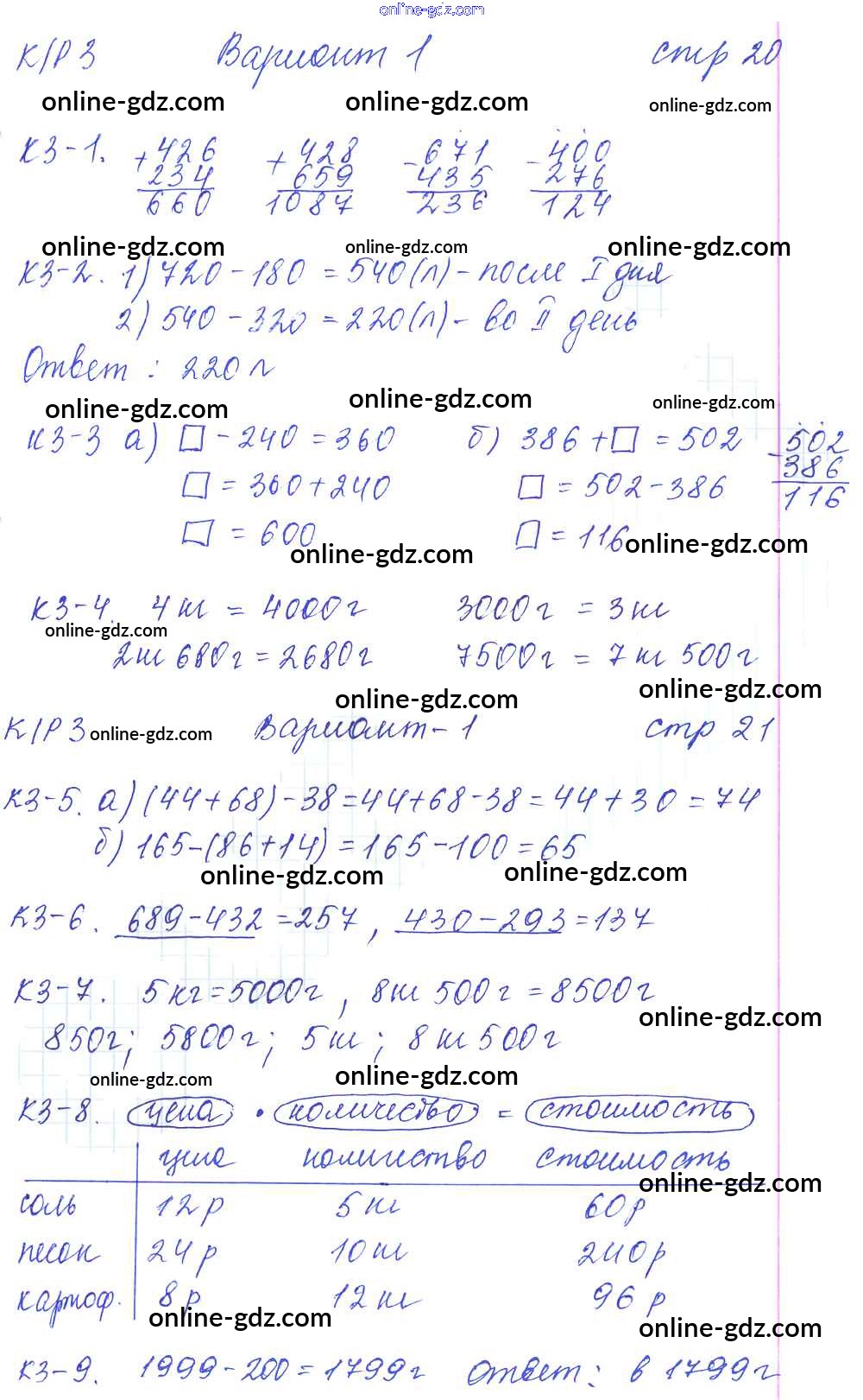 Готовые домашние задания по Математике за 3 класс Контрольные и диагностические работы Башмаков, Нефедова Планета знаний 2018 - Контрольная работа №3 вариант 1